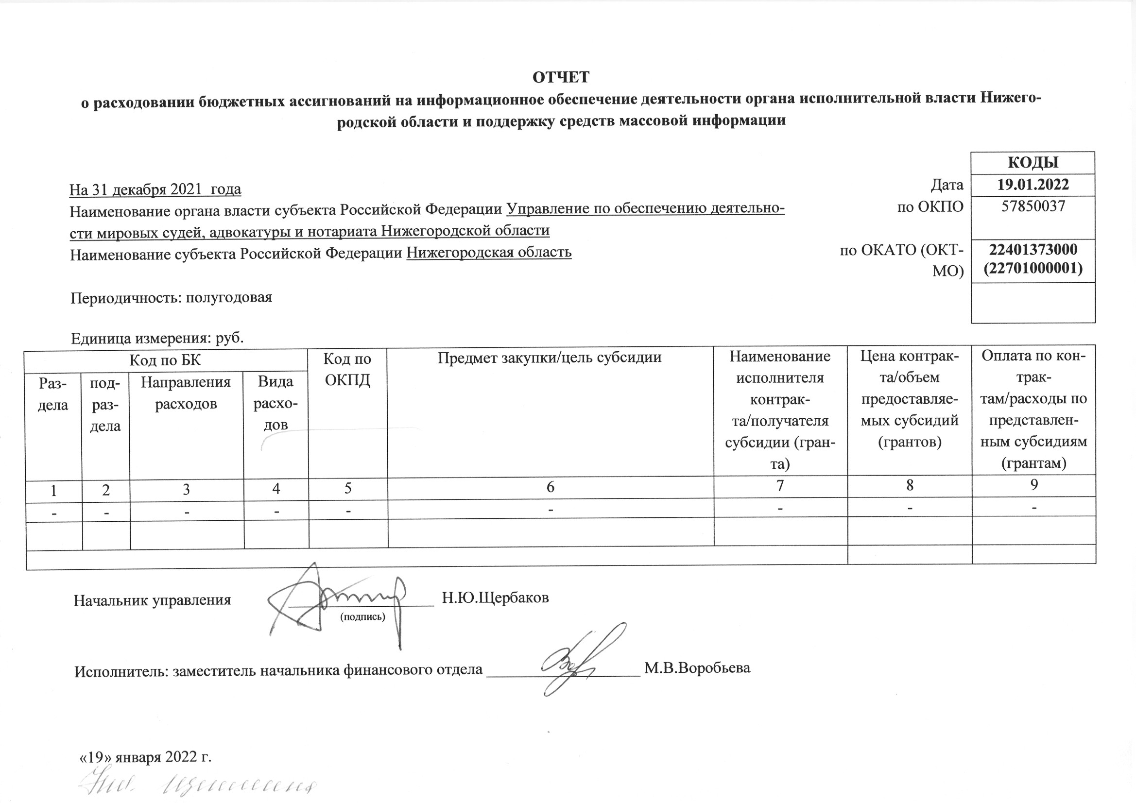 Отчеты о расходовании бюджетных ассигнований на информационное освещение деятельности Управления и поддержку средств массовой информации